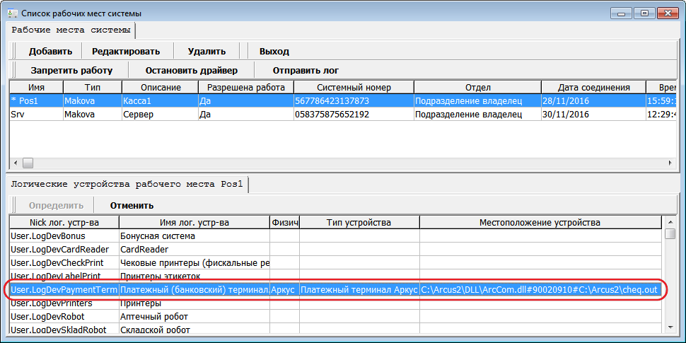Для того чтобы описать к уже существующему в системе рабочему месту-кассе логическое устройство (драйвер), необходимо выполнить следующие действия: