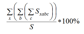 - Wxabc = Kxabc * Vxabc – прибыль, полученная от конкретного товара (индексы определены выше).